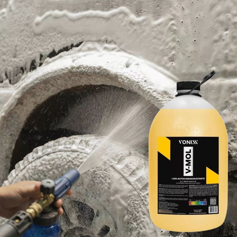 V-Mol é um lava autos biodegradável com pH levemente básico (alcalino) que não agride a superfície. Ideal para lavagem de automóveis, em especial para remoção de sujeiras mais difíceis, como remoção de barro e óleo. Especificação Técnica: - Alta Durabilidade e Resistência - Perfeito Acabamento MODO DE USO: 1. Diluir o produto na proporção indicada; 2. Iniciar a lavagem com o auxílio de uma luva de microfibra, sempre começando pelas partes superiores do veículo; 3. Mergulhar a luva na solução e esfregar suavemente até completar o veículo; 4. Enxaguar em seguida até a retirada de todo o produto; 5. Secar o veículo por completo a fim de evitar manchas. Importante: - Garantia de 3 meses. - O Fuscão Preto Auto Peças não se responsabiliza por mau uso do produto ou por instalações amadoras, recomendamos que a instalação seja feita por um profissional capacitado. - Preços e condições de pagamento válidos somente para compras no site Fuscão Preto - O valor anunciado se refere a cada unidade do produto.