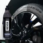 REVOX é um selante sintético para pneus, formulado para proteger, dar brilho e renovar o seu aspecto, além de promover total hidrorrepelência. Sua fórmula exclusiva é livre de solventes, ecologicamente correta e não inflamável. REVOX é extremamente resistente à lama e chuva, deixando o pneu limpo por mais tempo. Especificação Técnica: - Produto Pronto Para Uso - Não Sai na Água - Máximo Rendimento - Alta Durabilidade - Disponível em: 500 ML Durabilidade: Até 45 dias. Informações Adicionais: Não recomendamos aplicar Revox em partes plásticas. Modo de Usar: 1- Limpe bem os pneus; 2- Com ajuda de uma espuma aplicadora ou aplicador específico para pneus, aplique o produto de maneira uniforme, garantindo total cobertura, sem falhas; 3- Observe o nível de brilho. Se desejar um resultado mais brilhante, realizar nova aplicação após 5 minutos. Obs: O nível de brilho pode ser regulado também de acordo com a quantidade de produto aplicado: quanto mais produto, mais brilho. Caso opte por acabamento com menos brilho, aplicar quantidade reduzida de Revox. Importante: - Garantia de 3 meses; - As cores podem sofrer variações de tonalidades de acordo com o lote, com a configuração do seu dispositivo ou monitor; - Preços e condições de pagamento válidos somente para compras no site Fuscão Preto - Imagens meramente ilustrativas; - O valor anunciado se refere a cada unidade do produto.